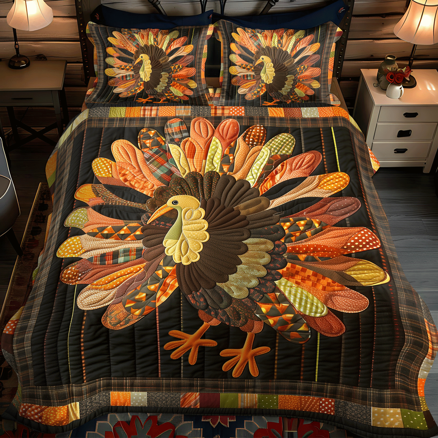 Autumn Turkey 3-Piece Quilted Bedding Set NCU0TH1108