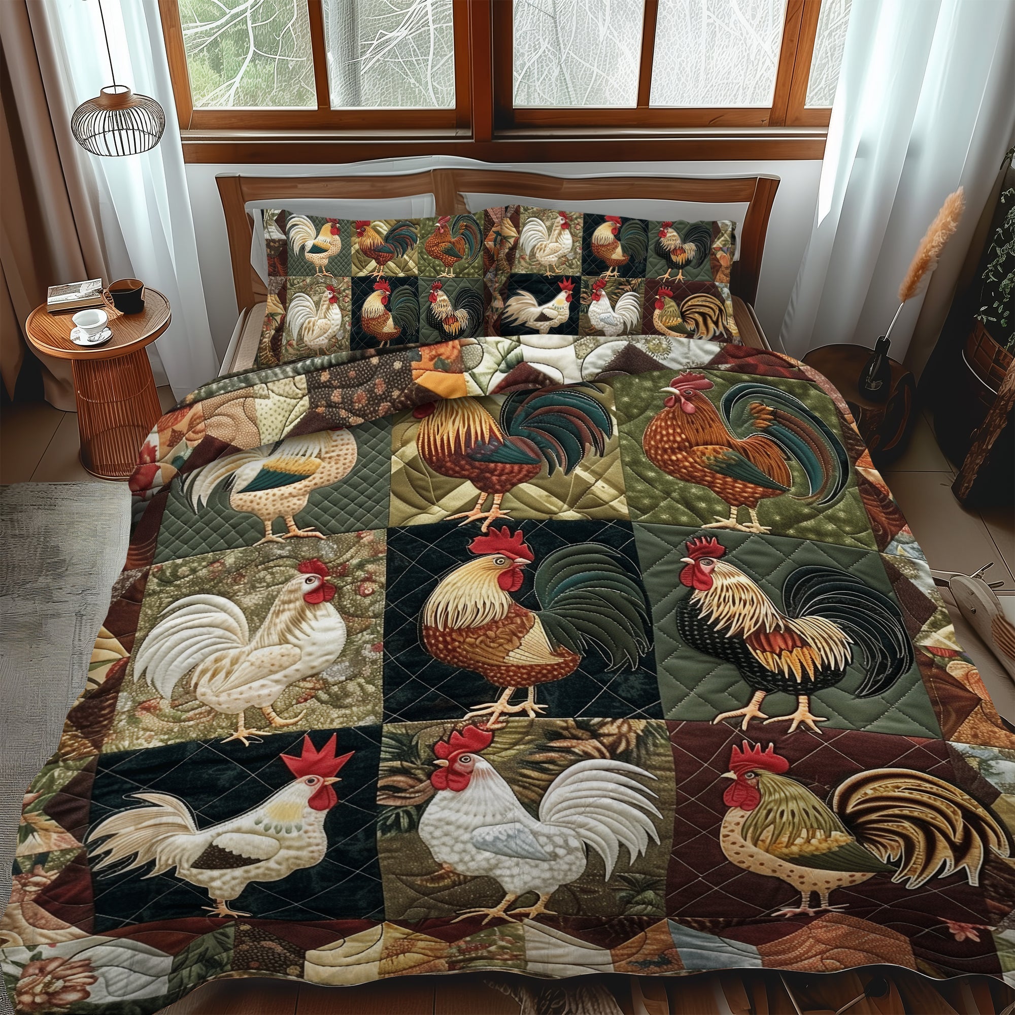 Barnyard Rooster 3-Piece Quilted Bedding Set NCU0TH895
