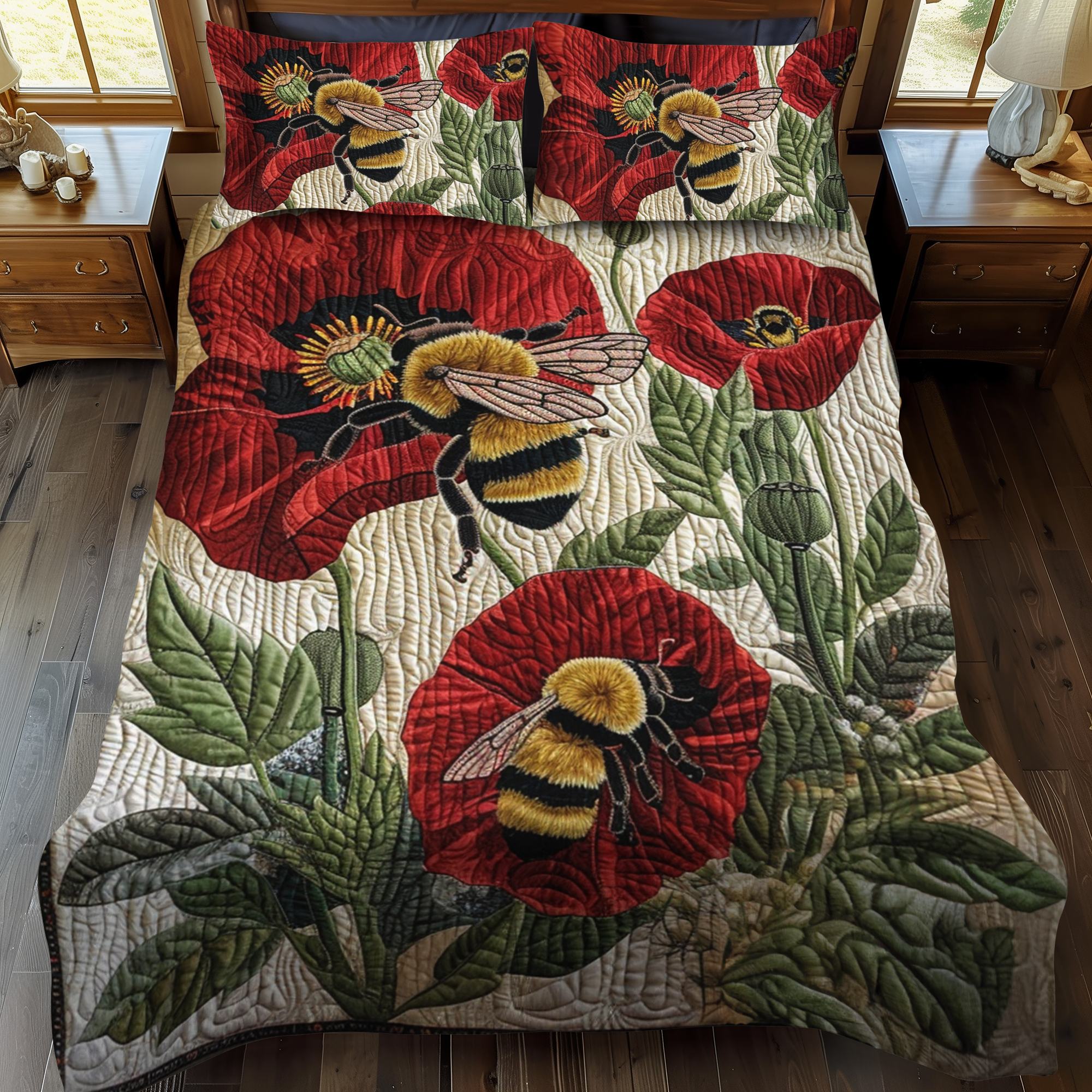 Bee-Kised Blooms 3-Piece Quilted Bedding Set NCU0NT005