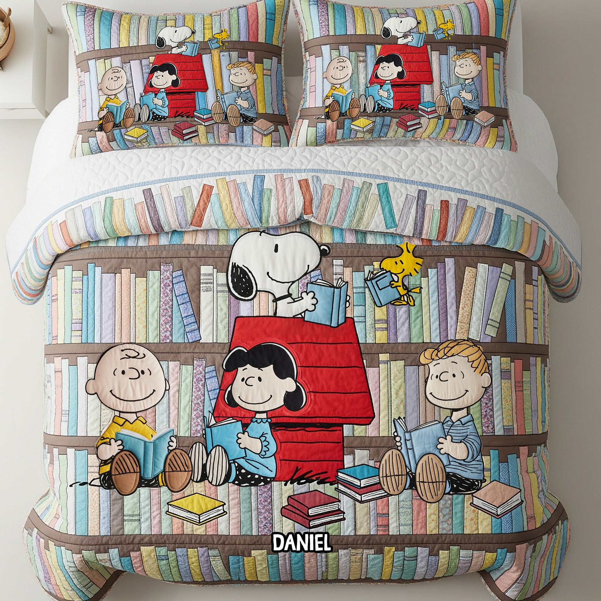 Cute Characters In Library Quilt Bed Set, Personalized Gifts For Book Lovers 04qhmg170725