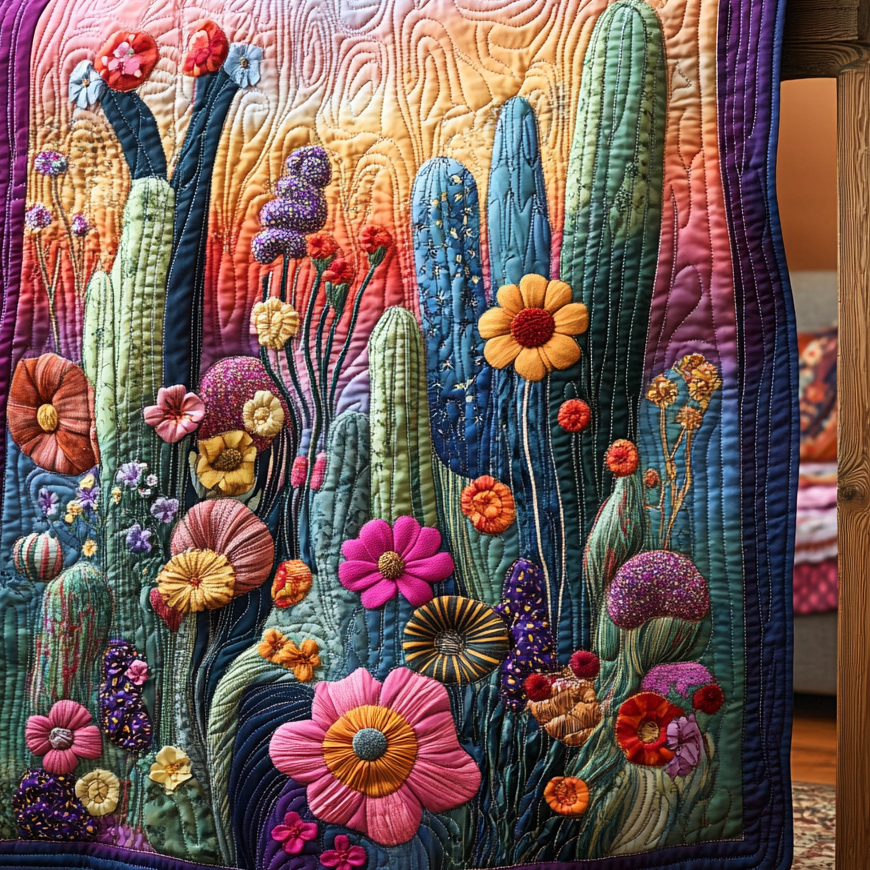 Psychedelic Cactus Quilted Blanket NCU0DV1160