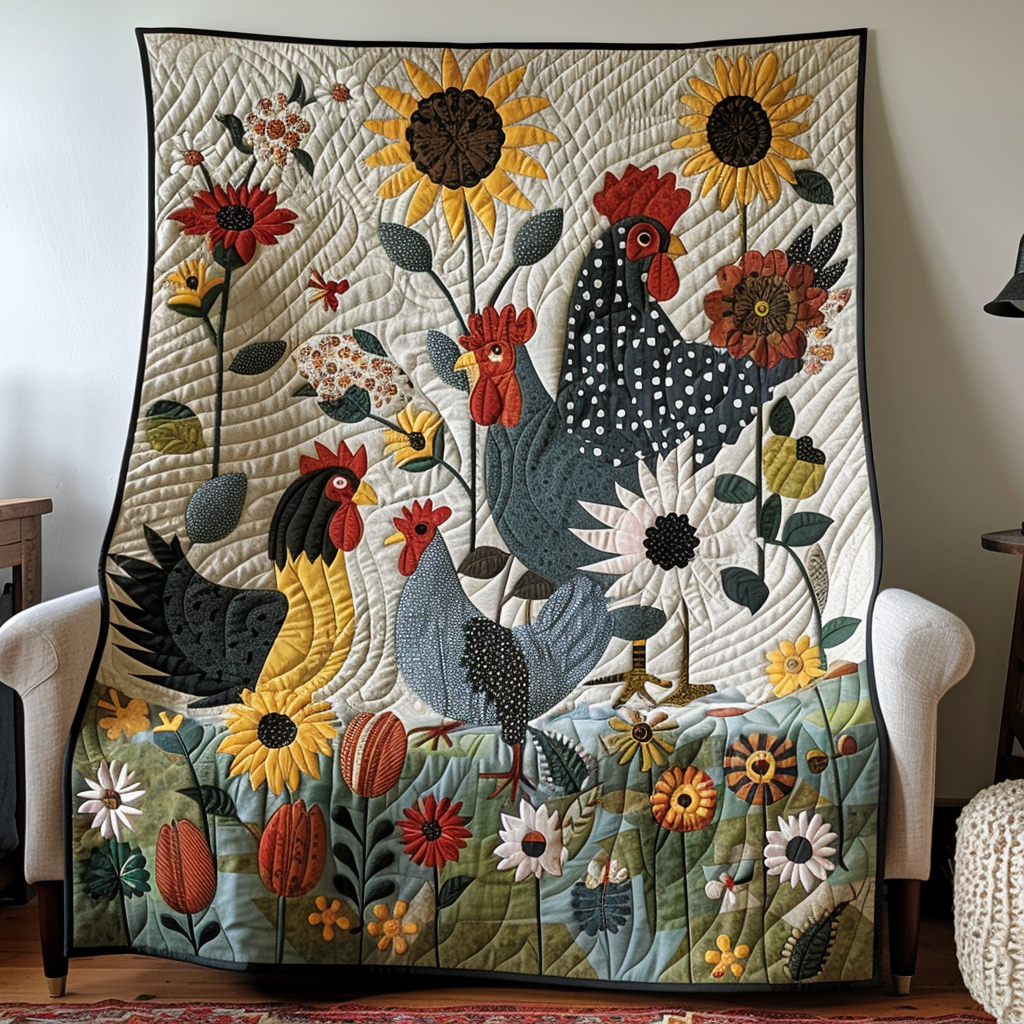 Rustic Chicken Meadow Quilted Blanket NCU0TL255