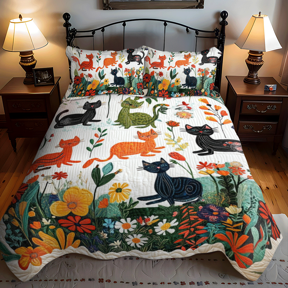 Artistic Cat-Themed 3-Piece Quilted Bedding Set NCU0PD639