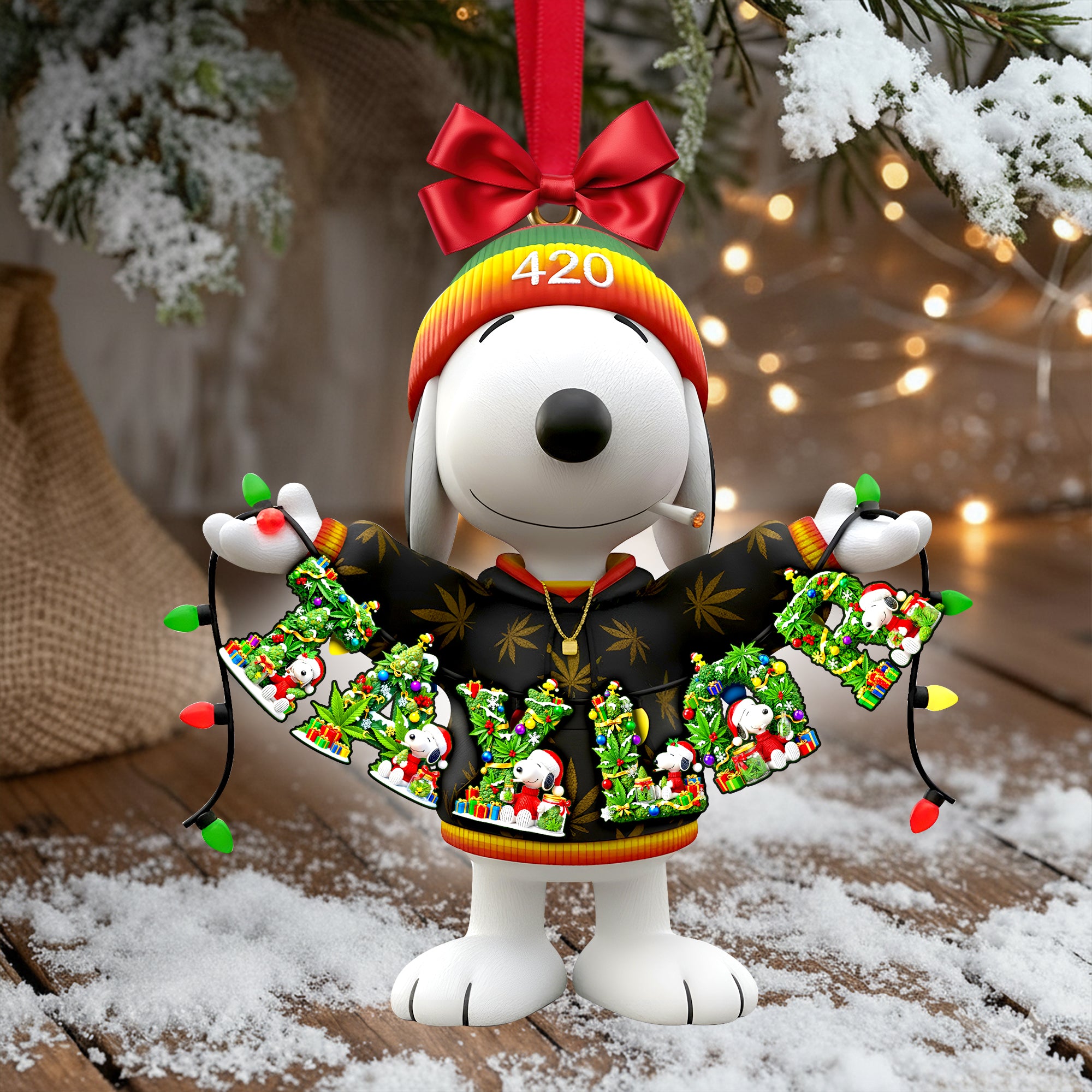 Personalized Christmas gifts for stoners! Ornaments for trees and decor—various shapes and materials, depicting festive symbols for a joyful atmosphere.