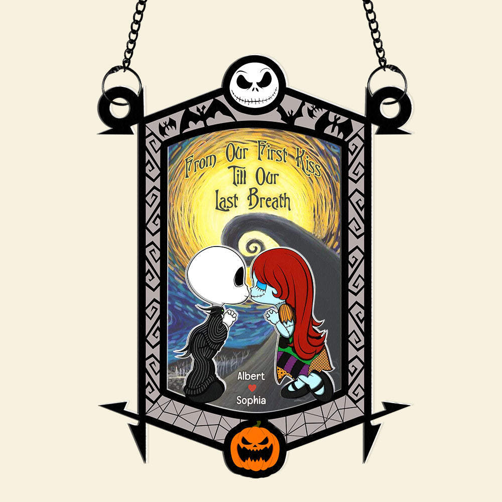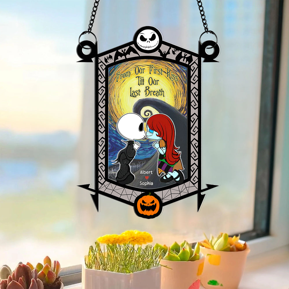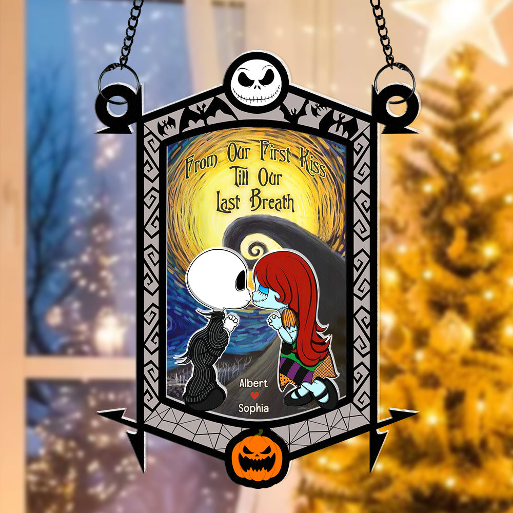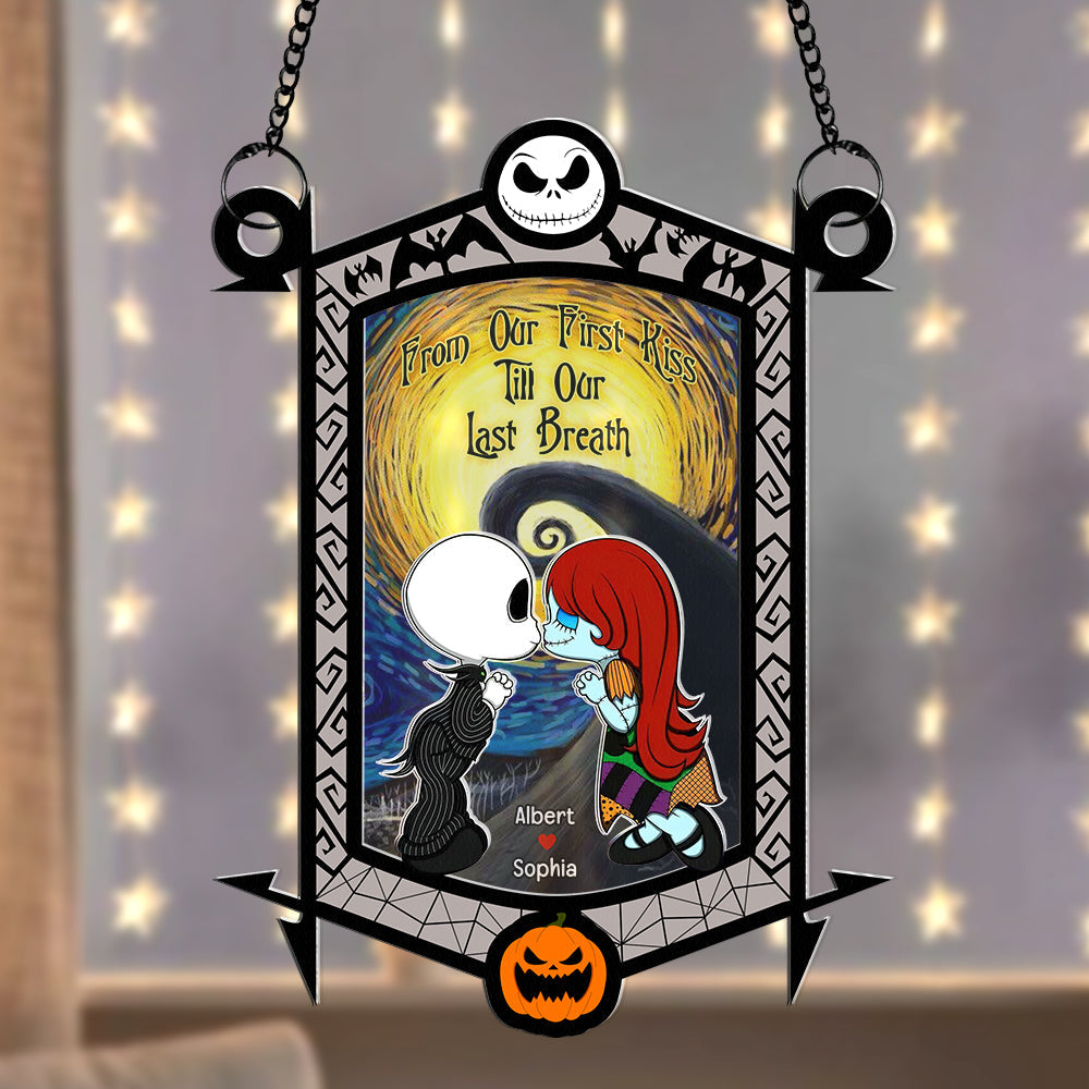 Personalized Gifts for Couple, Cartoon Couple Kissing Under The Moonlight Acrylic Suncatcher 02TOQN130824