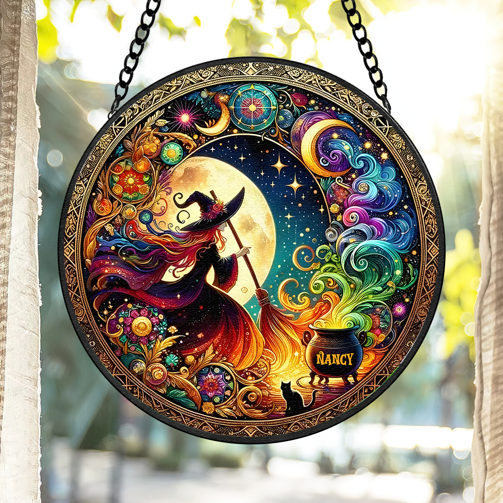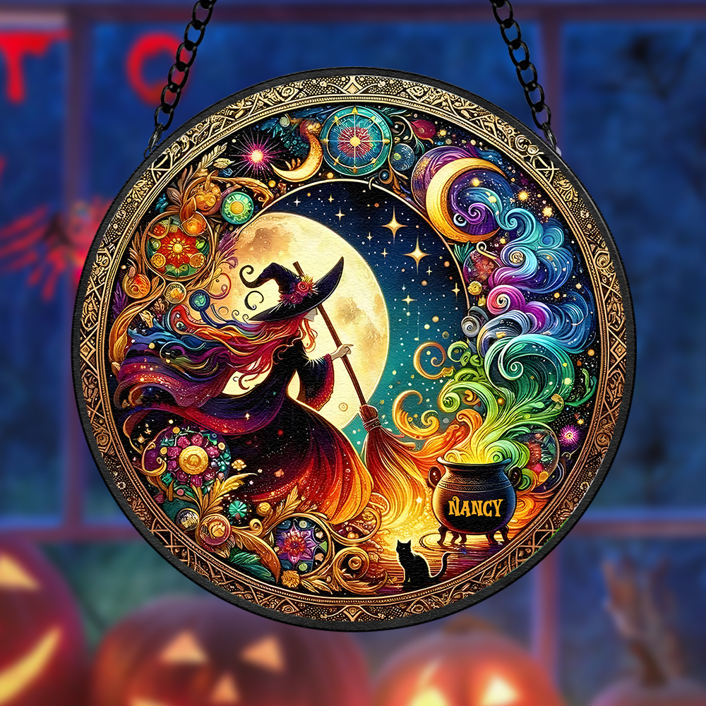Discover unique, hand-crafted stained glass, perfect gifts for witch lovers, these personalized stained glass artworks capture your loved likeness in vibrant colors and intricate designs. Order your custom stained glass today and elevate your home decor with a touch of elegance.