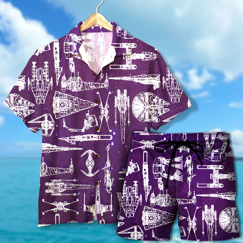 Hawaiian Shirt & Men's Beach Shorts - Spaceship Pattern 04achi080422