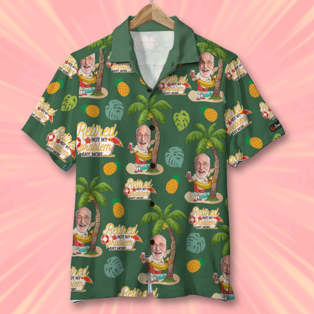 Retired Not My Problem Anymore, Custom Photo Hawaiian Shirt and Men Beach Shorts, Retirement Gifts for Dad