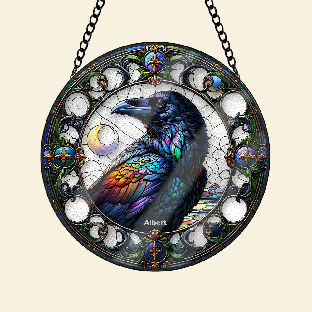 Personalized Halloween Gifts For Witch Lover Black Crow Stained Glass Ornament 17acqn240824