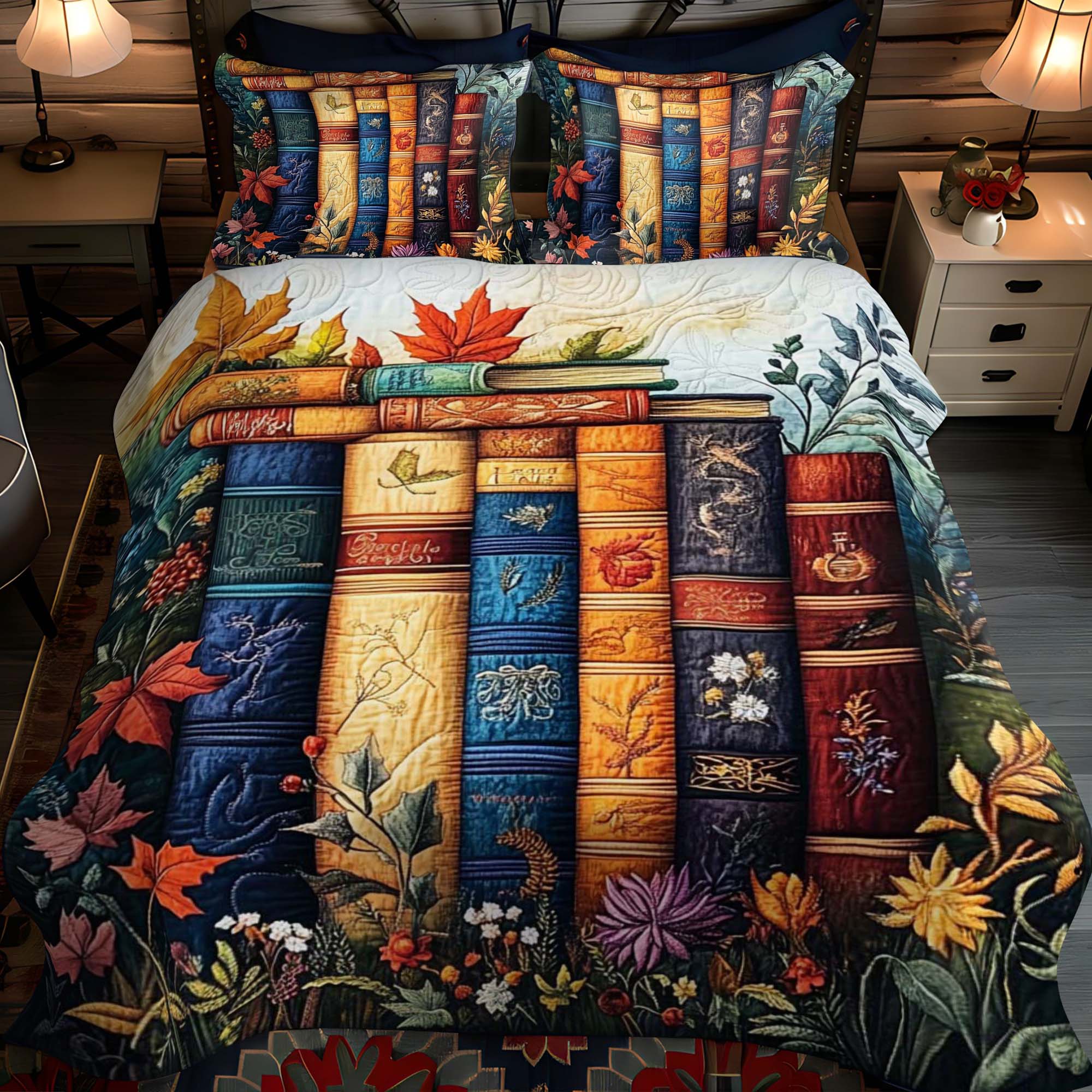 Autumnal Bookshelf 3-Piece Quilted Bedding Set NCU0NT1062
