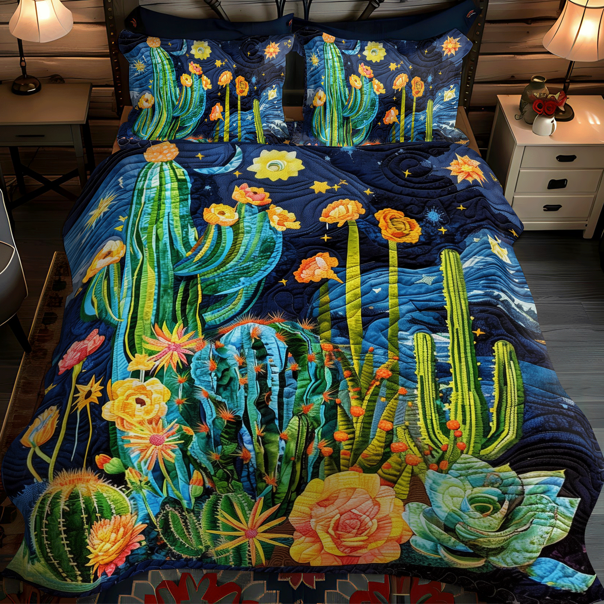 Cactus Night Sky 3-Piece Quilted Bedding Set NCU0DV338