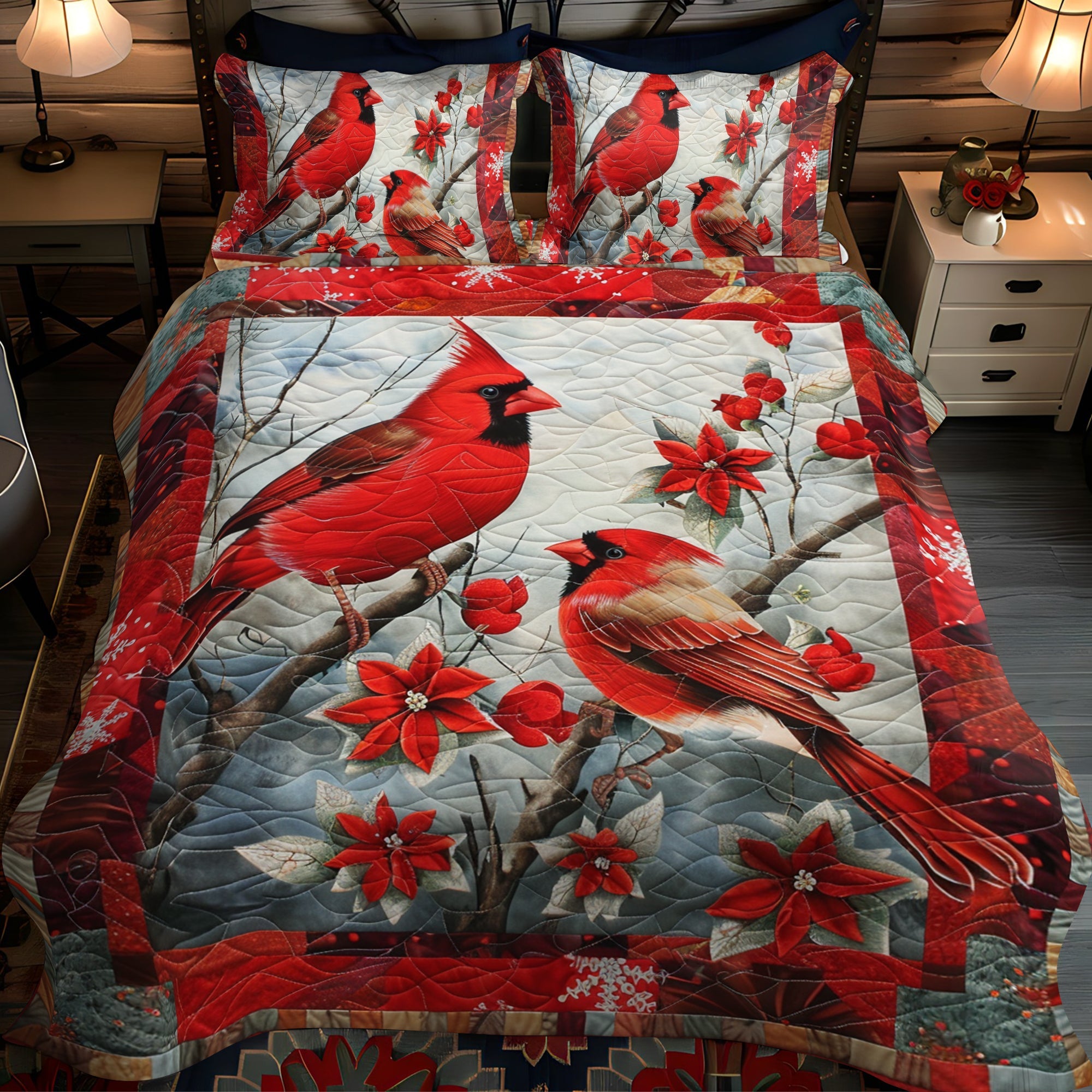 Cardinal Bird 3-Piece Quilted Bedding Set NCU0PD201