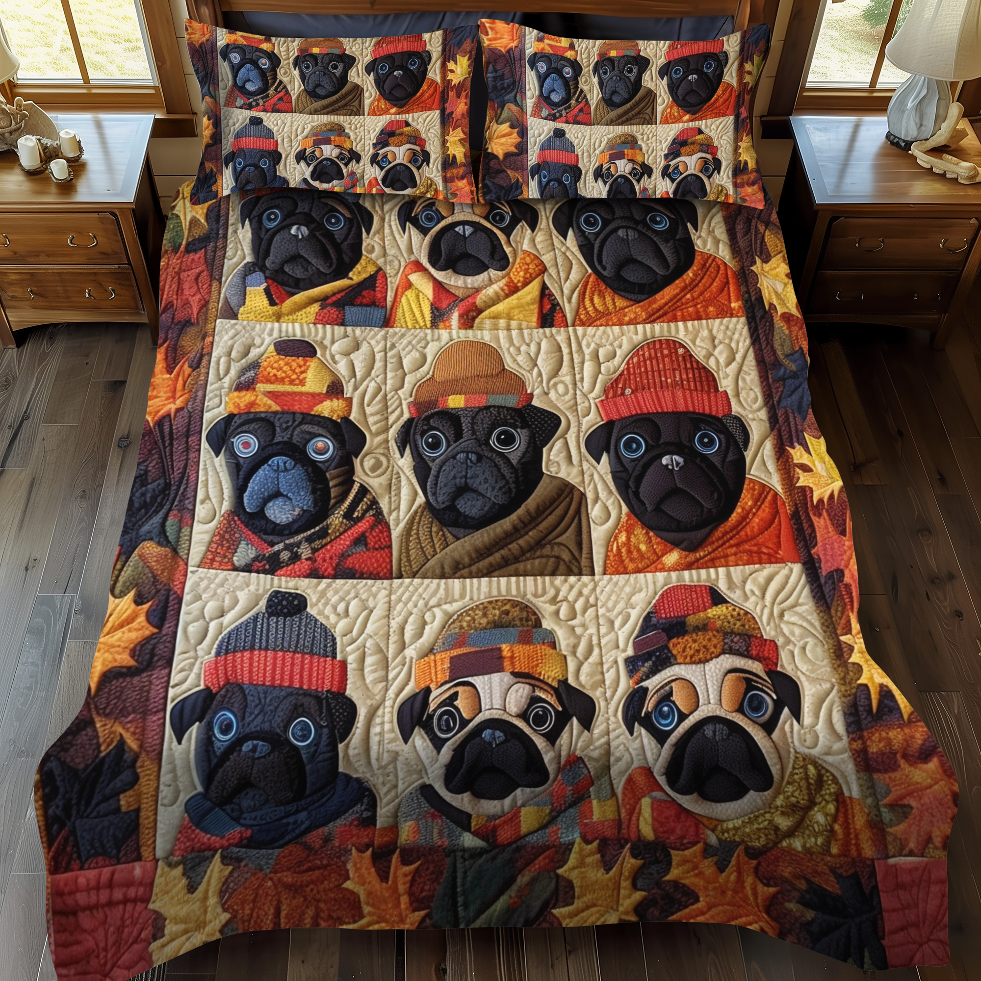 Charming Pugs 3-Piece Quilted Bedding Set NCU0VL097