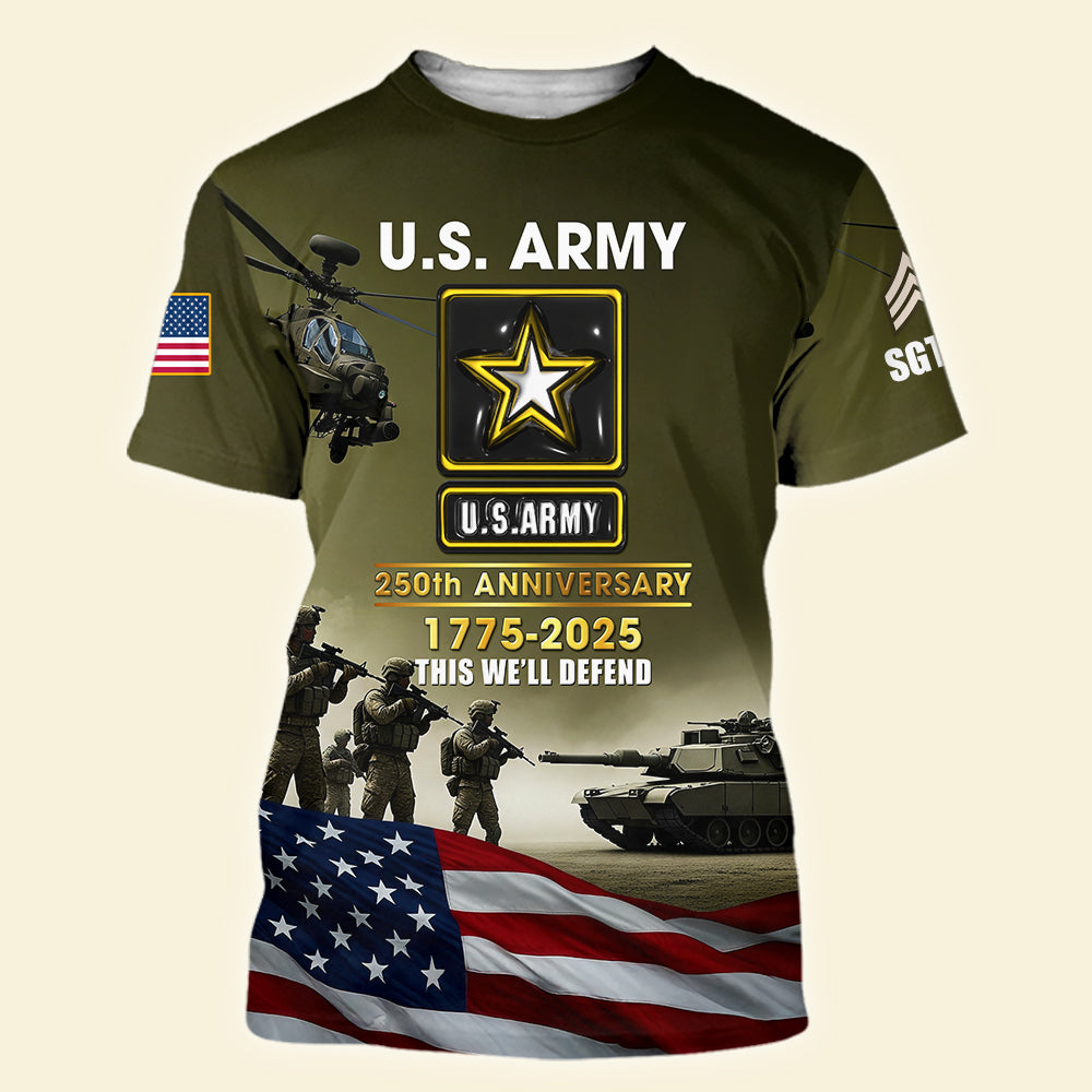 Military 3D Shirt – Personalized 250th Anniversary Gift for Soldiers 03naqn030725