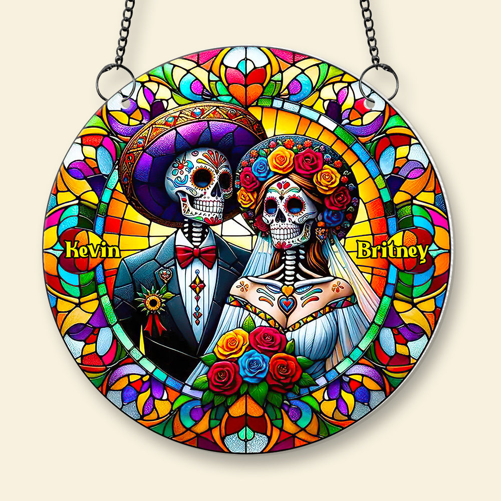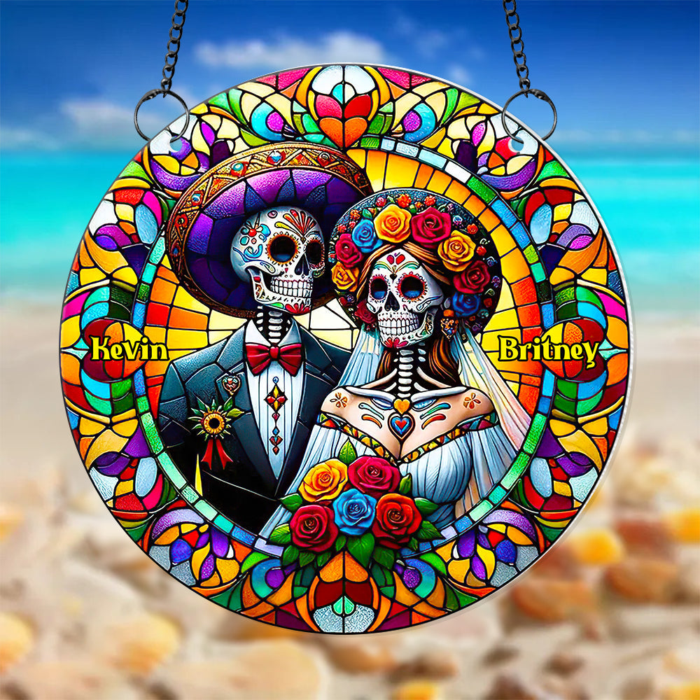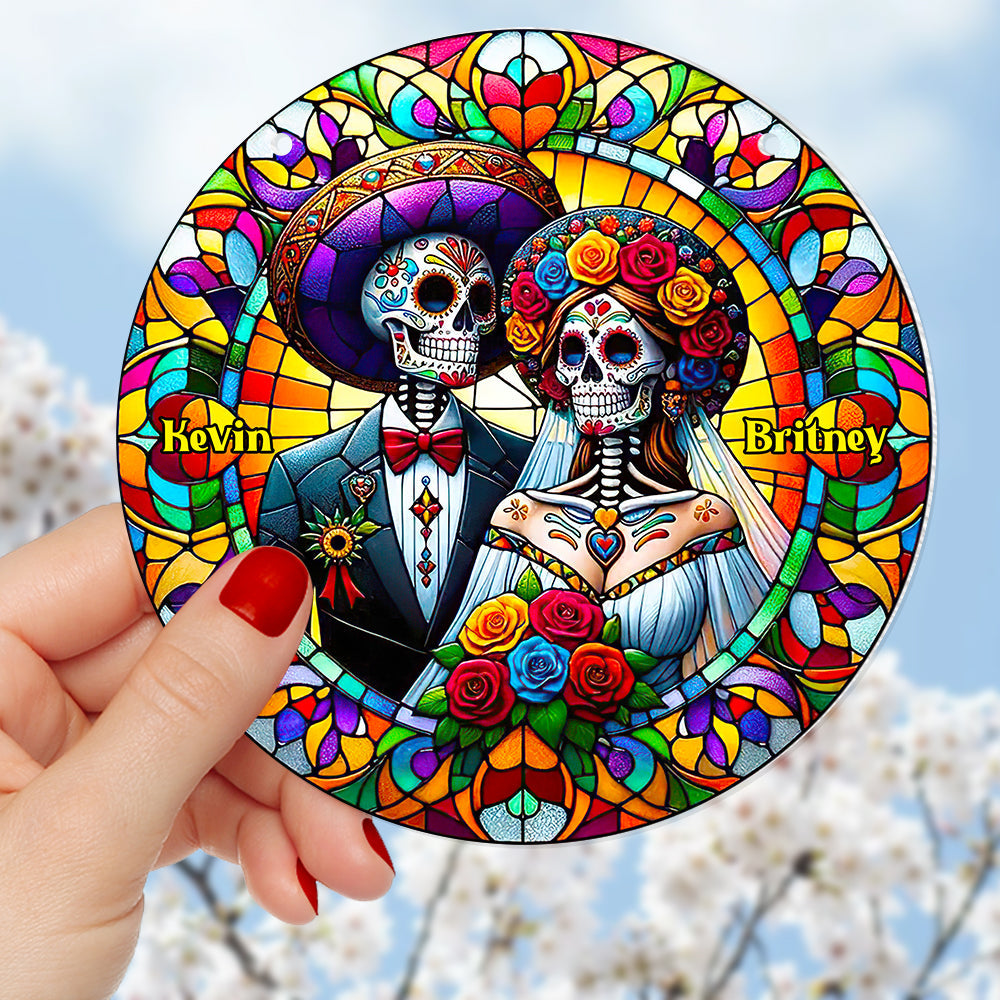 Personalized Gifts For Couple, Boho Skull Couple Acrylic Suncatcher Ornament 03ACDT310824