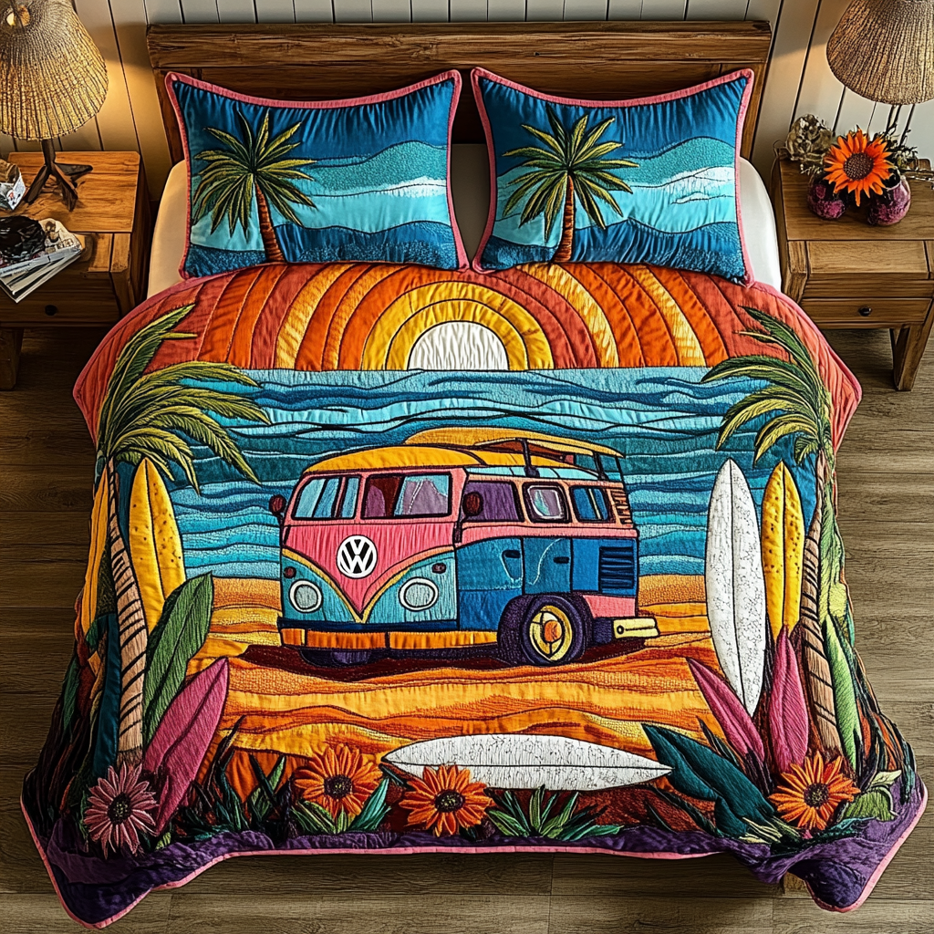 Aqua Retreat 3-Piece Quilted Bedding Set NCU0VL1749