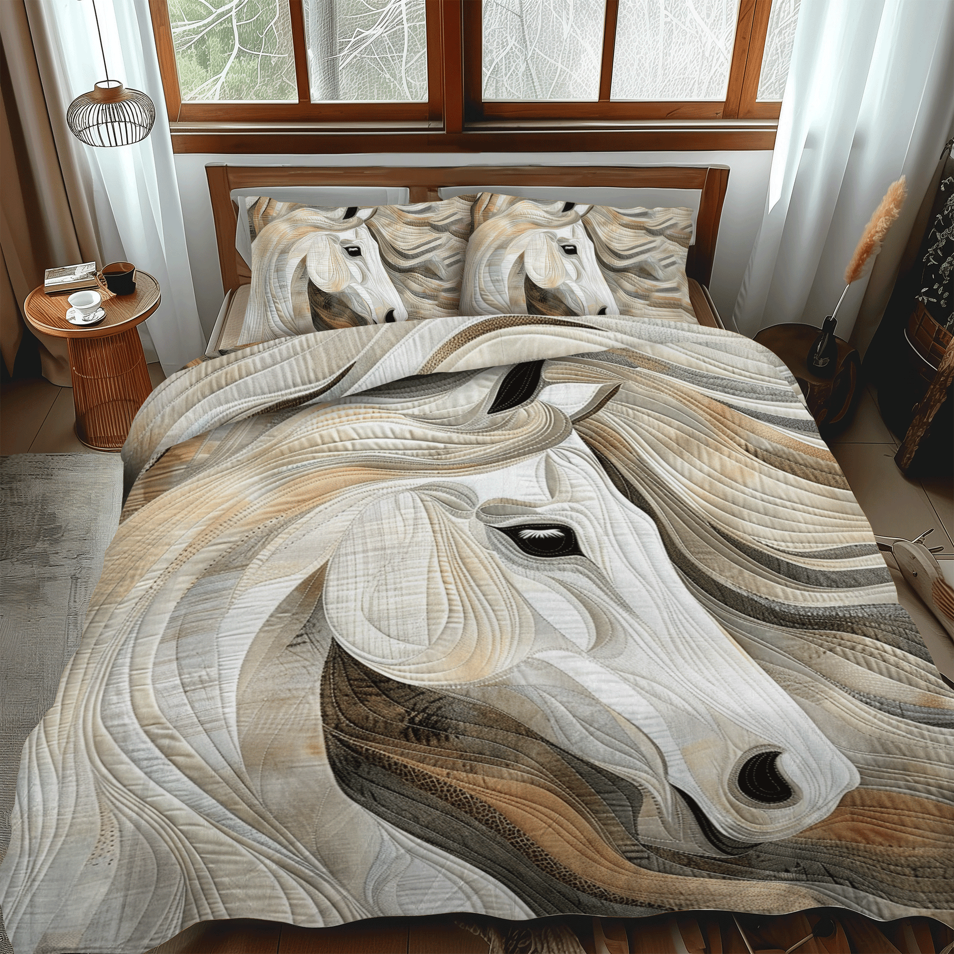 Artistic White Horse 3-Piece Quilted Bedding Set NCU0PD335
