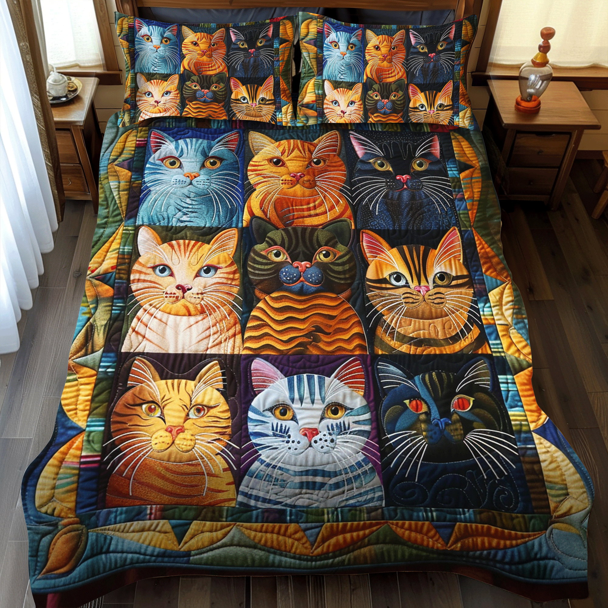 Cat Parade 3-Piece Quilted Bedding Set NCU0PD323