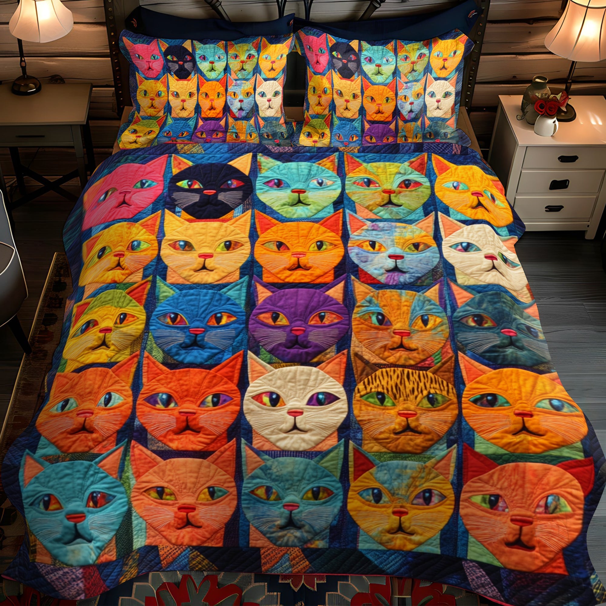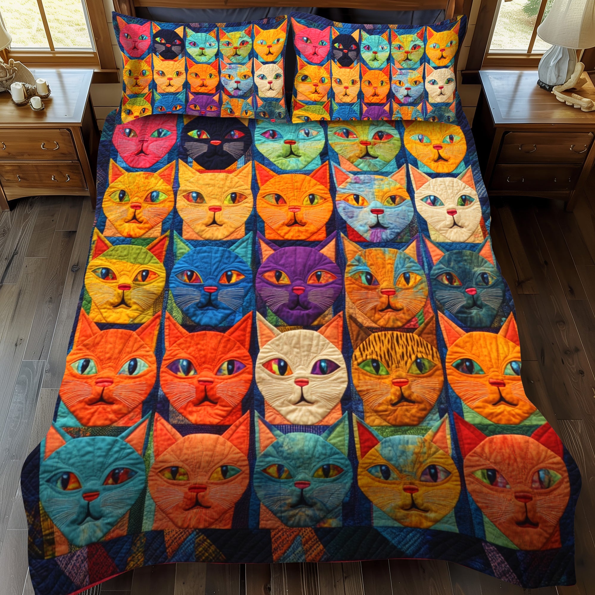 Cat Portraits 3-Piece Quilted Bedding Set NCU0PD420
