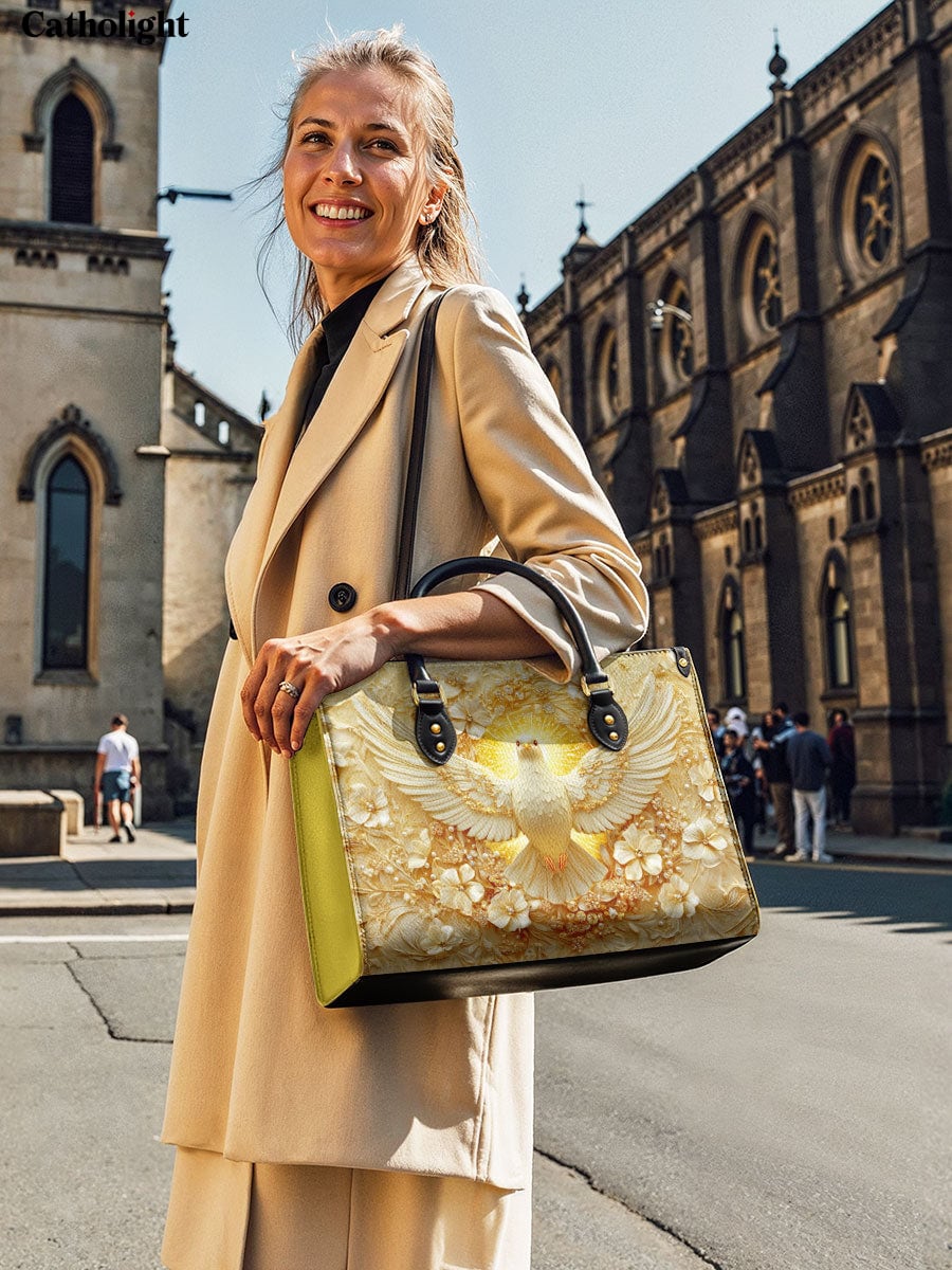 Perfect for church services, special occasions, or as a meaningful everyday accessory, this leather bag combines practical sophistication with profound spiritual symbolism. It serves as a cherished reminder of faith, hope, and the peace brought by the Holy Spirit.