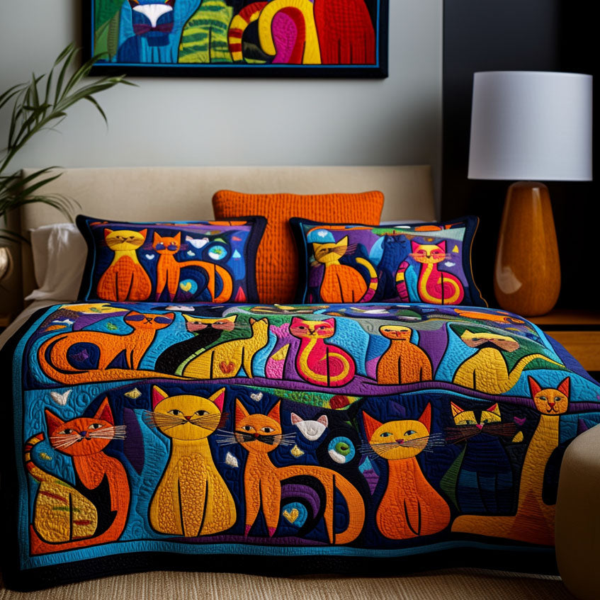 Catnap Kingdom 3-Piece Quilted Bedding Set NCU0PT2340