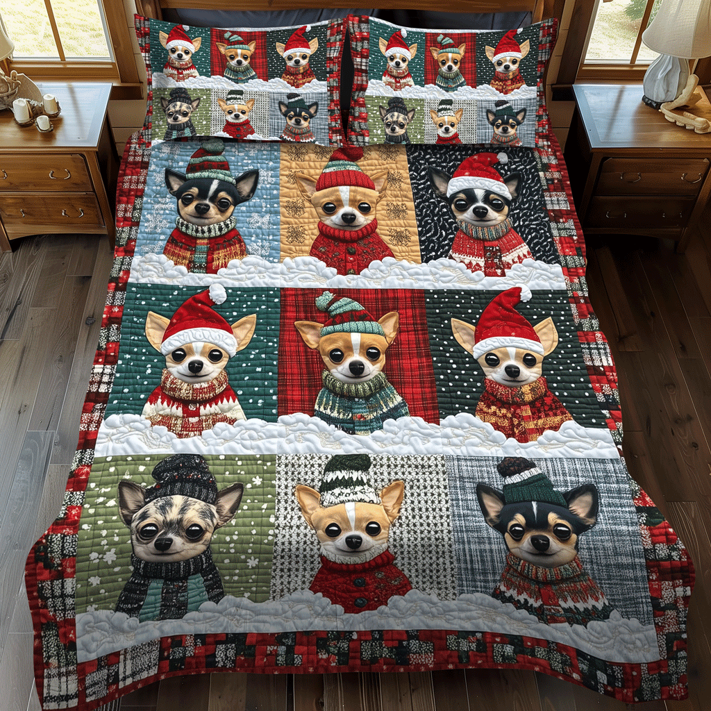 Chihuahua Xmas Crew 3-Piece Quilted Bedding Set NCU0TH2043