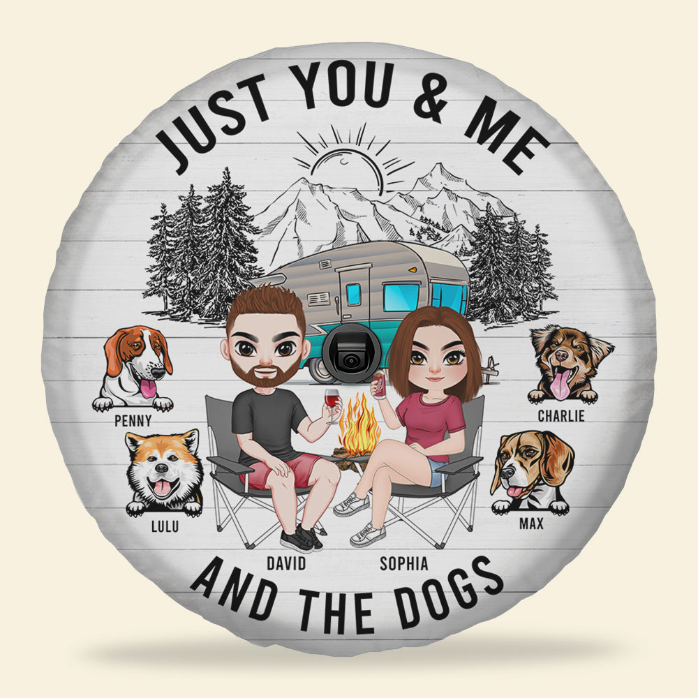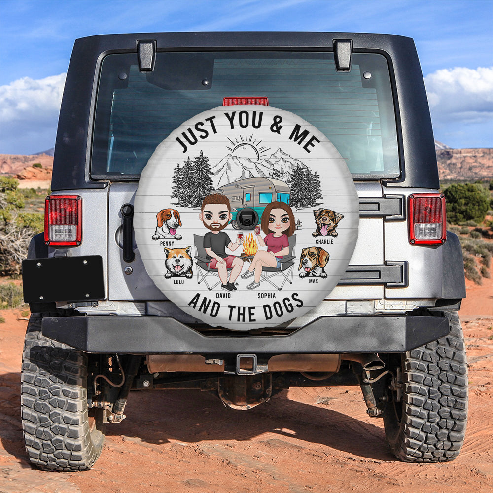 Just You And Me And The Dogs, Personalized Tire Cover, Camping Trip Tire Cover, Gift For Camping Lovers