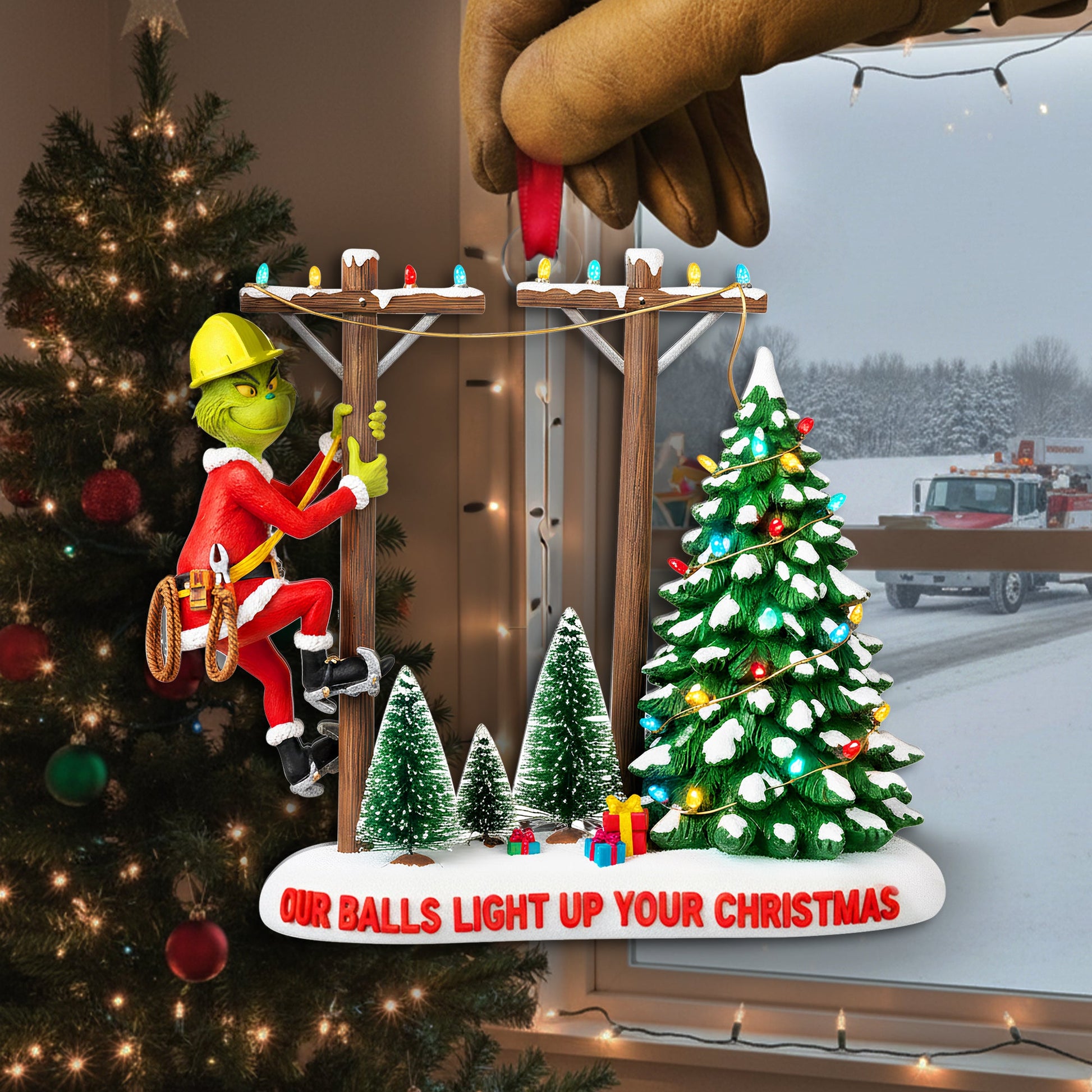 Personalized Christmas gifts for Lineman! Ornaments for trees and decor—various shapes and materials, depicting festive symbols for a joyful atmosphere.