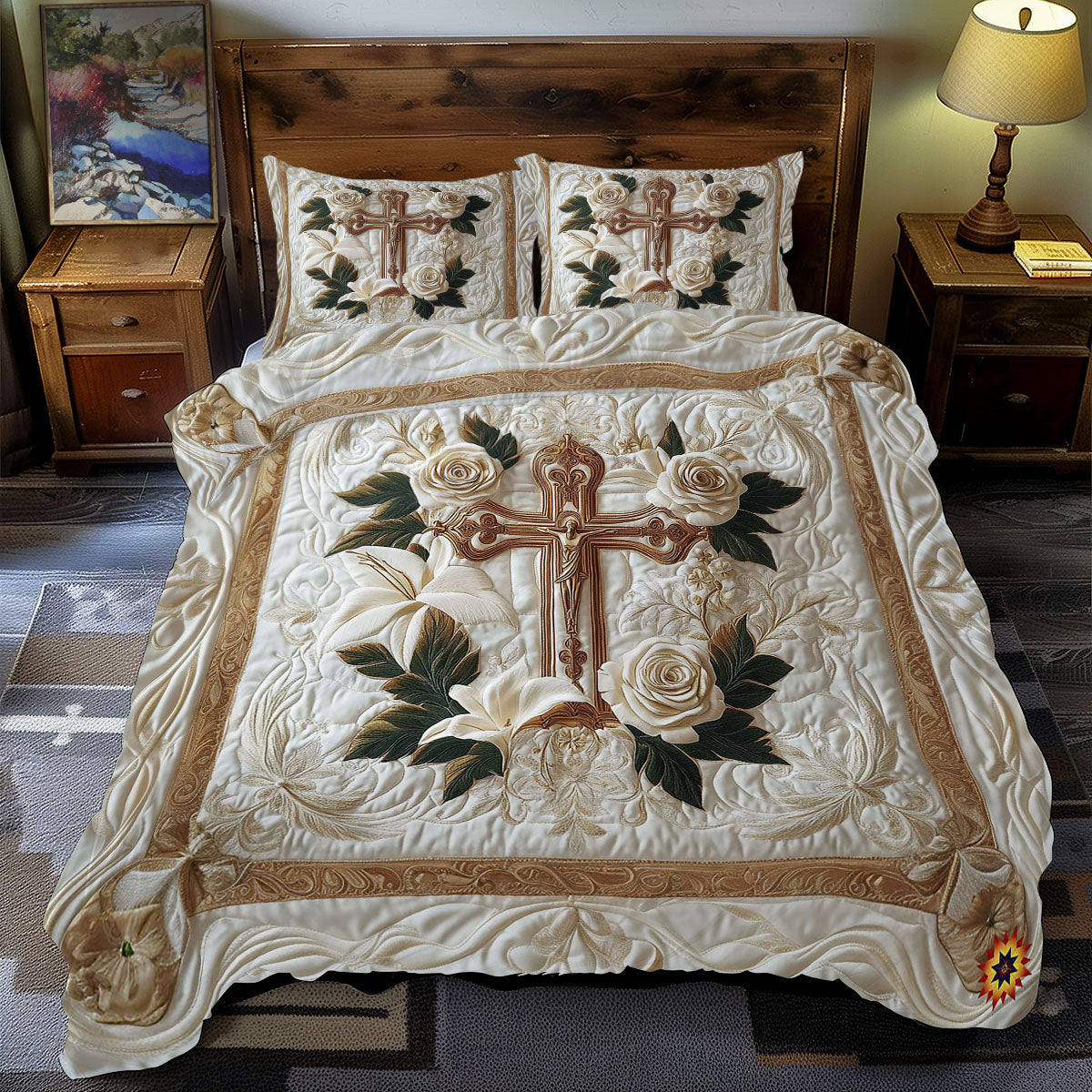 Sacred Cross With White Roses Quilted Blanket 02acxa150425